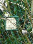 (1) Great Tit; (2) ?? Blue Tit or Female Great Tit?? (I thought Blue Tits were smaller than this...); (3) Coal Tit; (4) Great Tit holding its own against a Long Tailed Tit.