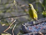 Two unusual visitors this morning in the sunshine between the hail, one Greenfinch, very photogenic, and two Goldcrest which would not stand still for pictures.