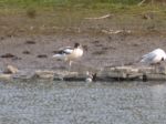 one adult or near adult Med Gull ...lacking the hood just a big patch.....but had fully white wings.....