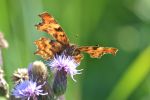 • DARK GREEN FRITILLARY - 1 seen at Holden Wood.  Landed in front of me briefly before flying off.  Despite missing a fair chunk of its right wing it flew quite strong and fast and I couldn't relocate it