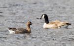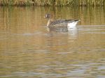 Nice photos. Should have waited. I do think it is a genuine wild bird and it appears tame only because it is associating with Canada Geese. It was very wary at first and crossed to the other side. The White Fronted Goose at Swillington Ings disappeared like that too. There is a place in the North West where some Pink Feet come very close to the hides looking for leftover food - Martin Mere!