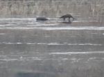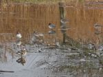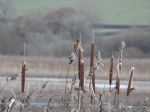 Back to the Sky Tower and the views of the reserve were good.  We could see Marsh Harriers float over the reeds, twisting and turning.  Then a Great White Egret appeared and flew over to what would be our next stop the Jackson and Grizedale hides.  I suggested we go but Paul said 5 more minutes.  Out of nowhere the Great White Egret appeared and flew past the Sky Tower.   The Jackson and Grizedale hides were frozen and the ducks were distant although a small flock of Teal decided to land in front feeling sorry for us and keeping us entertained.  I caught movement of something trotting on the ground - cats? dogs? - they looked a bit clumsy, dark and long - 2 more Otters!  We had seen 4 today.  Paul had not seen one for 25 years and today he saw 4.  What do Otters and buses have in common?