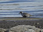 No Black Terns were there but certainly not disappointed when Russell pointed at some waders in the Bay area. The black belly was unmistakeable along with the spangly grey back and head colour - a summer plumaged Grey Plover with one still yet to turn. These 2 were feeding with 4 Ringed Plover and nearby rested 4 Dunlin. A flock of about 30 Godwits flew over - some did have wing bars so Black tailed. They may have been disturbed by something as there were other birds flying too - could be resting or feeding in nearby fields across the road?