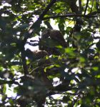 I arrived home today to be told 2 juvenile tawny owls were sat in a tree at the front of our house. The attached photo is the best I could manage through the foliage