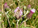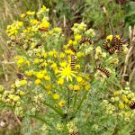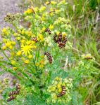 Large numbers of Cinnabar Caterpillars feeding on Ragwort plants