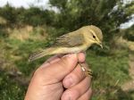 Nets up targeting Tree Pipit and Redpoll.  Again Tree Pipits were coming steady all session and still going as i packed up at 10. A minimum of another 15 birds went South, 9 being caught and ringed. Could have been more but for wind on net.  Steady trickle of Redpoll and M Pipits and noticeably more Swallows moving today. Again decent numbers of Willow Warbler moving through the trees and only 1 of yesterdays 14 ringed birds were re-trapped suggesting at least some are migrants just passing through.