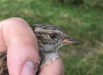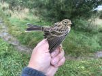 TREE PIPIT..  Ringed as a bird born in current yr (3) at Crown Point ringing site on 6th Aug '17.     1 of the 70+ caught and ringed there in 2017.