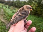 Again another disappointing morning in the nets and overhead considering the conditions and time of year. Set up early to try for pre-dawn Redwings dropping in out of the sky as the daylight appeared. It worked sort of, as 20+ (1st of autumn up here) dropped in within first 45 min but none into any net. In fact, most dropped low but didnt land and carried on west, almost ignoring the lure. Pretty unusual for them not to drop in at first light..  Apart from the redwing early doors it was decidedly quiet. Again very few of the commoner migrants, even quieter than the 6th. Did manage to catch a Redpoll with a ring from elsewhere.