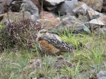 As we began to gain altitude along a mountain pass, the pub we were trying to find, The Lamb & Fox came into view. Around 25 cars were parked near to the narrow road and a few birders could be seen heading out over the moorland. It was very windy along the disused tramway path that led towards the quarry with not one bird being seen in the 15 minute walk. A few birders happy faces told us that the bird was showing really well. Upon arrival the bird was soon seen and what followed in the next hour and a half was really good. The Rock Thrush would sit on the quarry rock face for a while then come down onto the ground, about 5 yards away and begin to feed on beetles and some mealworms provided by the local birders. It was quite a show from this well marked individual, it also had a couple of Wheatear`s for company, that it tried to chase away. We also met Phil R and Rob C from Greater Manchester/ Bolton birding area, who also enjoyed the bird. I then met my South Wales friend Jeff S and we had a good catch up about life & birds. We had first met in Sharm el Sheik, Egypt a few years ago whilst out birding and have kept in touch ever since, great to catch up again Jeff. We made our way back over the wind swept moorland and as we arrived at the car it began to rain.