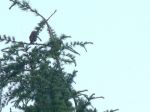 Crossbill, party of 6 birds flew into tops of tallest conifers at Calf Hey. Poor record shot attached!