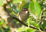 Grasshopper Warb reeling in usual spot, quite a few willow/chiffs flitting round the bushes, a flock of c30 Goldfinch on the thistles and 6-7 Linnet.