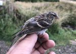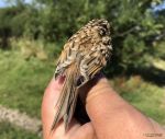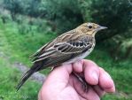 First go this autumn in lovely sunny and calm conditions specifically for some Tree Pipits. Not to disappointed as there was a steady trickle all the time I was there. Ended with 16 passing over but strangely very few dropping in and only 2 going into the nets, and 1 of them got out! Only other notables were a nice Treecreeper which are rare up there, an unusually high number of M Pipits, and 4 singles Skylarks going south. Not seen this before so early. A few W Warbs and Redpolls flitting about the trees but quite quiet bar them.. Had to pack up early at 9.15am.