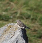 After a small debate as to shall we or shant we go for the Wheatear concluded with a positive, so a Trans Pennine journey began. We changed drivers in Huddersfield (I have an aunty from there, have I told you?) A couple of downpours on the motorway as we passed a Manchester sign didn`t put us off and the cross England trip was completed as we arrived in sunny and breezy Pilling. Lots of parked cars and a group of around 35 birders could be seen watching the Wheatear, again we hurried along to the spot. The bird was sheltering under a large boulder but soon performed admirably chasing prey items around and perching on top of the sea wall rocks. We watched the bird for about an hour then it was joined by a couple of Northern Wheatears and a size comparison could be made. Due to the difficulty of identifying either Eastern Black-eared Wheatear or Pied Wheatear females a sample of the birds droppings has been taken for DNA analysis then, hopefully the identification can be put to rest. My own thoughts are that the bird is a Pied Wheatear, then what do I know! Certainly a bit of a different day trip out culminating in me getting a Lancashire tick.