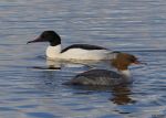 On the water were 2 Goosander (1m,1f), 1 G C Grebe, 1 Moorhen (boathouse end in rushes at waters edge. Never seen one on the res before I don't think?) 4 Cormorant, 10+ Mallard, 15 Common Gulls, 10 B H Gulls.