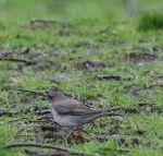 A first winter Black Throated Thrush had taken up residence in some school (institute?) grounds in Grimsby, Lincolnshire. As we had only been out on a couple of birding trips this year we thought that a trip over to see it would be nice. We met in Newhey and with Bob K driving made good progress over the M62/M180 etc, with Steve, Chris B and myself for company. Upon arrival the rain had begun to fall and during our time on site hardly stopped! Thankfully a fellow birder was on site and pointed us in the right direction to see the thrush, the bird sat in a tree at first, then thankfully, it flew onto the ground and gave us all good views as it dragged a couple of worms out. After a couple of minutes the bird flew back into a tree and remained perched up for the rest of the time we were there.