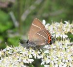 12 July minimum of 10 White Letter Hairstreaks at a spot near Edenfield. Other butterflies seen include:- my first ever Rossendale Comma, Red Admiral, Small Tortoiseshell, Green Veined White, Meadow Brown, Small Skipper, a freshly emerged Peacock, Small White, Ringlet and Small Heath