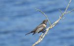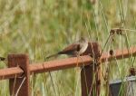 Whitethroat in the rushes and on the rusty fence just above the reservoir