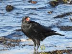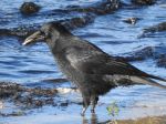 carrion crow - c16, with 2 foraging on res shore & 1 seen with a small fish that it tossed in the air so that it could swallow it head first