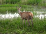 After refreshing at the café we went straight to theSky Tower and just underneath in a clearing were 100 plus Black Tailed Godwits feeding.Once again there appeared to be an aura of emptiness.An eerie silence that was only punctuated by the few Black Headed Gulls that were present.It was not the same. The raucous cacophony of the Black Headed Gulls was dimmed.Numbers of waterfowl seemed low with Gadwall, Mallard, Shoveler, Shelduck, Tufted Duck, Pochard, Teal all present.We could see Marsh Harriers hunting around the reserve.On we moved to the Grizedale and Jackson Hides and outside the former were 2 Red Deer feeding very close to the hide. The Goat Willow had shed a lot of seeds and turned the land and water under the trees white.We walked to the Causeway Hide and sat and watched 16 Swans when Phil caught the site of 3 Bitterns in the air chasing each other.The dreariness was now interrupted. From the expected direction but without warning flew an Osprey and it was a bit confusing where to look. 3 Bitterns chasing each other or Osprey? The latter came closer so it took my attention anyway. Reed Warblers, Sedge Warblers and Cettis began to sing again as the afternoon waned.