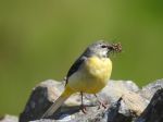 1pr grey wagtails carrying food to hidden young at Cowm