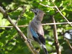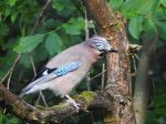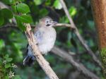 1pr of jays chasing another jay away from 2 juvs