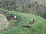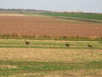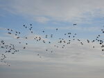 The Thrushes were in an agitated mood and quite jumpy.There were many in the Hawthorns, a few in the grass and a couple of Blackbirds and a Song Thrush in the open field. Most if not all of these had just made the sea crossing so were tired, hungry and wary.They would dart about from one place to another.Reed Buntings were very active and numerous too.How many of these would have been migrants judging by behaviour maybe most.The Skylarks were very active too, calling, maybe some were on active migration.T least 1 Skylark was in some sort of subsong.Starlings were noisy and numerous and feeding quite loudly.We had seen quite a few come in off the sea.Watching a flock of Starlings feeding in a field we spooked a large covey of Grey Partridge which numbered more than 10?There were also quite a few groups of Roe Deer active.Wed just arrived after sunrise so they were making the most of this quite period before the visitors descended.There were good numbers of Tree Sparrow on the feeders.For some it was a year tick.I doubt I have seen these numbers for quite a while myself.