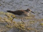 We walked back to Easington Lagoons and a Ringed Plover was spotted.Surprisingly within the vegetation rather than on the lagoon shore was the Pectoral Sandpiper.We located it and then posted the sighting online.Other than us 4 just 1 person had been to look for it but, on our way, back we came across dozens walking to the spot.This was a lifer for the other 3 and maybe my 4th after having 2 at Burton Mere Wetlands and 1 at Martin Mere.I was surprised how sharply coloured the bird was.A very smart contrast of the light underside with the superbly marked upper body.It associated with a Dunlin and even came up very close to us.It seemed to appear after the Storms from the West which would indicate it was an American bird.So many have crossed over from North America that breeding is suspected within Europe especially when juveniles turn up before any stormsin Western Europe.It was my best view of this species.