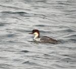 A day off and I decided to head off to Southport area as there were some good birds around the area.  First stop the Marine lake, at Southport for the Smew.  As I drove down the Marine Drive, a flock of abt 7 Golden Plovers flew over towards the estuary.  On arrival at the Marine Lake, I was directed to the right  side which was the North side by a fellow birder.  The Smew was close in but then moved away.  It was probably a female.  We watched it dive, sometimes for quite a while, often popping up a bit of a distance away.   A Kingfisher flew over as did a flock of Linnets and Skylarks.  A Shag and a pair of Red Breasted Mergansers were present some days back but sadly had moved on.