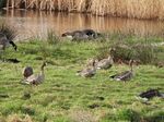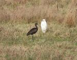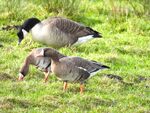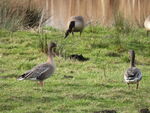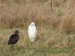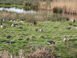 Martin Mere on the other hand did deliver. The most interesting day was when a local pointed out 2 Barnacle Geese with Pink Footed Geese. They were with a good carrier species! At the Ron Barker hide we watched and watched and then a minimum of 14 Cattle Egrets flew in and then the Glossy Ibis which has been mentioned on a previous visit by me. The Glossy Ibis joined the Cattle Egrets and has started associating with them. Fifty Cattle Egrets have been counted on some days at Martin Mere which is a huge winter count. Whilst watching these Mediterranean species 7 Russian White Fronted Geese flew close to the hide, which is what I was hoping for. This winter has seen an influx of this species into the UK and they are quite a striking and smart bird. A Water Rail had also crossed the path. I missed the Kingfisher, Barn Owl and Stoat seen by others earlier but we can't have everything. The drake Ring Necked Duck was still present but would move around to the other Hides.
